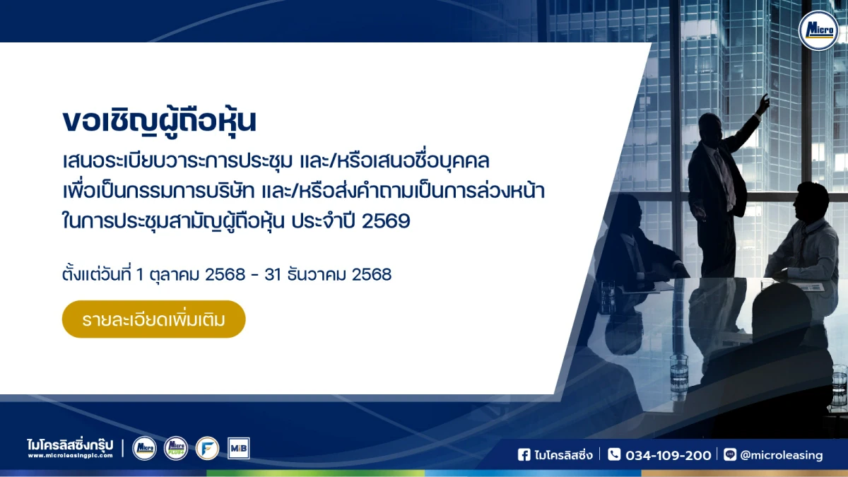 “ ไมโครลิสซิ่ง บริษัทสินเชื่อรถบรรทุกของคนไทย สนับสนุนอาชีพ สร้างรายได้ สร้างอนาคต ส่งเสริมเถ้าแก่หน้าใหม่ พร้อมให้คำปรึกษาที่ดีเยี่ยม ”